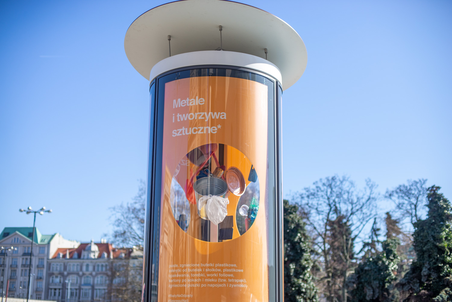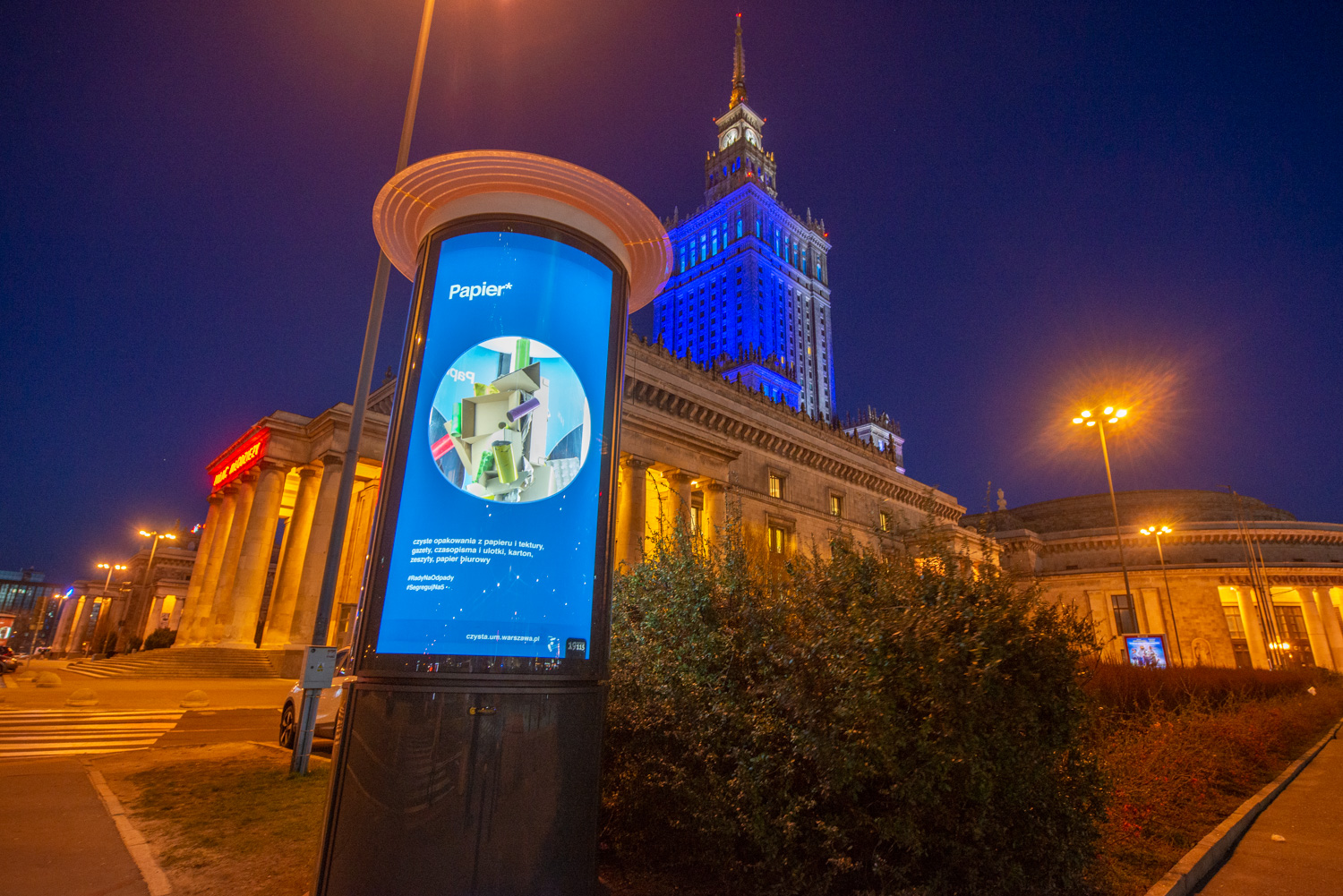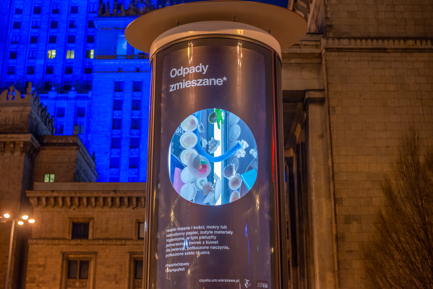 Najnowsza kampania niestandardowa jaką Warexpo realizuje dla m.st. Warszawy pokazuje jak poprawnie segregować śmieci. Pięć słupów reklamowych zlokalizowanych przy Pałacu Kultury i Nauki zostało na miesiąc zamienionych w kosze na odpady ze śmieciową kompozycją przestrzenną wewnątrz nośnika.