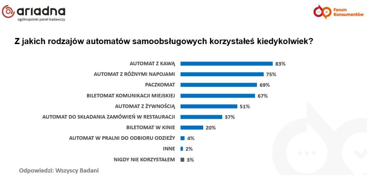 – Automaty samoobsługowe, jak pokazuje nasze badanie, ale też inne analizy dostępne na rynku, to świetne rozwiązanie dla konsumentów, którzy cenią sobie wygodę korzystania z nich i przede wszystkim oszczędność czasu. Mogą bowiem samodzielnie i w wielu lokalizacjach kupić napój, odebrać przesyłkę, kupić bilet. Nie muszą już tak jak dawniej szukać najbliższej placówki z danym towarem i tracić czasu na dojechanie do celu. Tak duże zainteresowanie taką usługą jest odzwierciedleniem globalnego trendu convenience, czyli szukania przez konsumentów nie tylko dobrego produktu, ale dostępności, wygody i użyteczności. Konsumenci szukają rozwiązań, które ułatwiają im codzienne i szybkie funkcjonowanie. Obszerna analiza na ten temat jest w raporcie „The Quest for Convenience”, przygotowanego przez firmę badawczą Nielsen z 2018 roku – mówi prezes Forum Konsumentów, Agnieszka Plencler.
