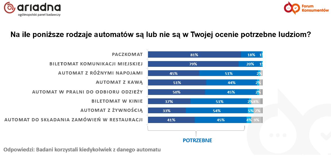 Co bardzo ważne niemal wszyscy ankietowani w badaniu Polacy są zdania, że zarówno biletomaty (99%), jaki i Paczkomaty (99%) są bardzo potrzebne ludziom.