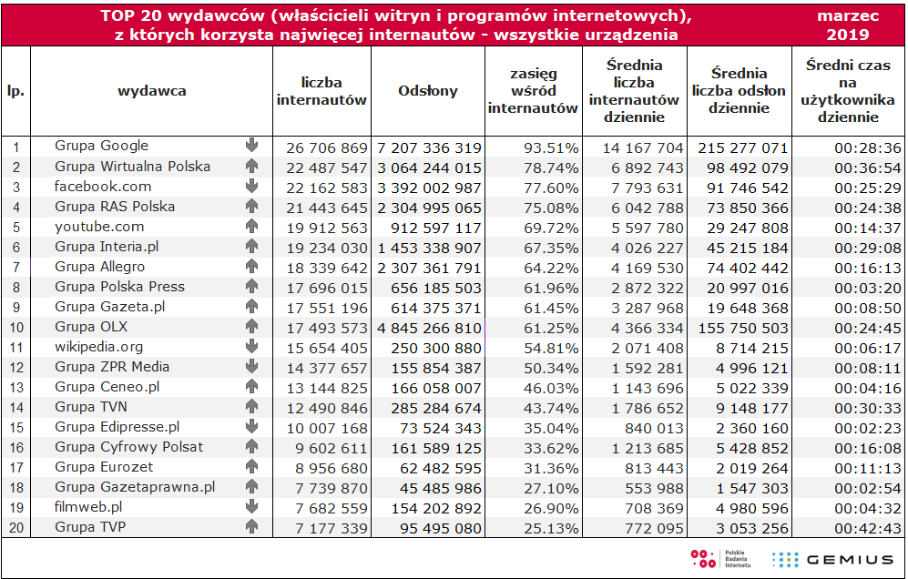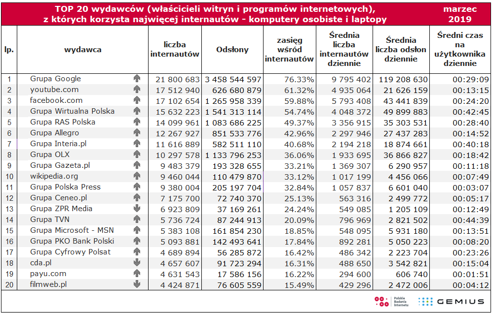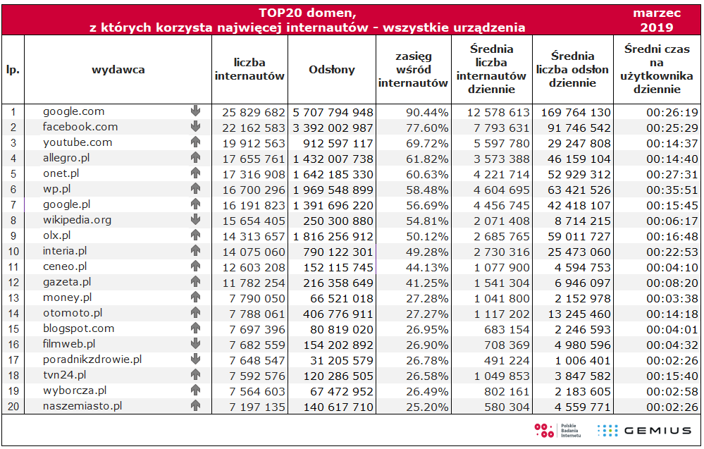 Liczebność próby: N= 170619. Grupa objęta badaniem 7-75 lat. Do badania wykorzystano dane o strukturze internautów pochodzące z badania NetTrack Kantar MillwardBrown z III kwartału 2018r. i badania Maluchy z 2018r.
