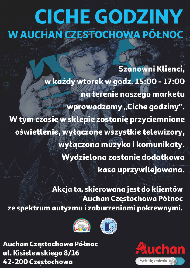 Marka Auchan na swoim LinkedInie poinformowała o wprowadzeniu –cichych godzin” do swojego jednego marketu w Częstochowie. W każdy wtorek, w godzinach 15:00-17:00 w sklepie zostanie przyciemnione oświetlenie, wyłączone będą wszystkie telewizory, muzyka i wszelkie komunikaty. Wydzielona zostanie również dodatkowa kasa uprzywilejowana.