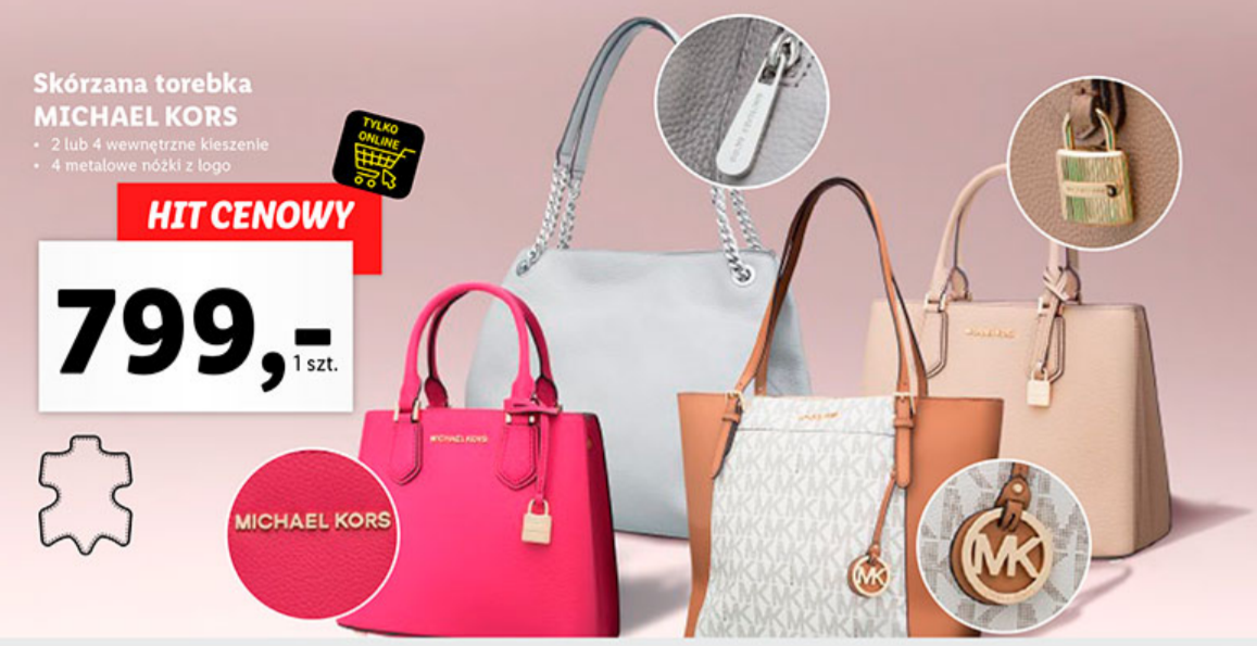 Lidl wprowadza kolejną akcję specjalną – tym razem będzie sprzedawać torebki marki premium Michael Kors. Niestety oferta będzie dostępna wyłącznie w sklepie internetowym firmy, wobec czego rozpaczliwa walka między klientami wśród półek sklepowych Lidla (tak, jak to było w przypadku torebek Wittchen czy butów Crocs) nie będzie miała miejsca.
