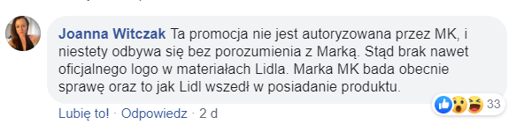Do sprawy odniosła się Aleksandra Robaszkiewcz, communications manager marki Lidl, która we wiadomości do NowegoMarketingu napisała: „Dostawa torebek marki Michael Kors była negocjowana przez międzynarodowy zespół Lidla dla więcej niż jednej spółki narodowej. Szczegółowe informacje na temat negocjacji handlowych dot. produktów oferowanych przez Lidl Polska objęte są tajemnicą handlową”.