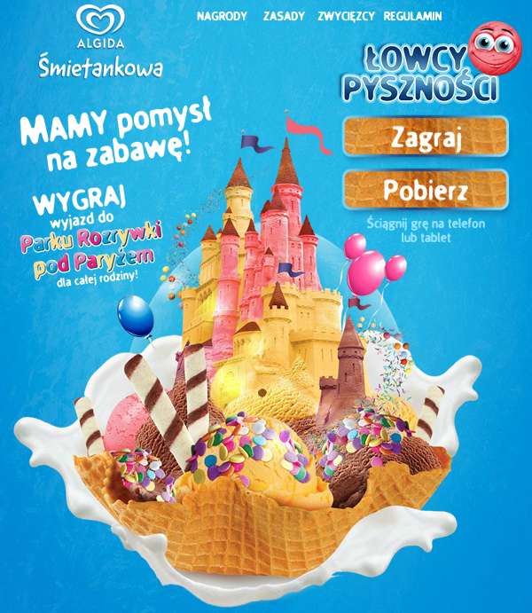 W ramach grupy oficjalnej „Strefa Rodzinnej Zabawy” została zamieszczona wieloplanszowa gra „Łowcy Pyszności”. Zadaniem graczy było zdobywanie punktów za zbijanie kolorowych kulek lodów Algidy Śmietankowej. Użytkownicy, którzy zagrali w grę oraz kupili lody Algida Śmietankowa (element sprzedażowy) mogli walczyć o rodzinne nagrody, m.in. wyjazd całej rodziny do parku rozrywki pod Paryżem. Na atrakcyjność akcji wpłynęła również angażująca komunikacja z członkami grupy.