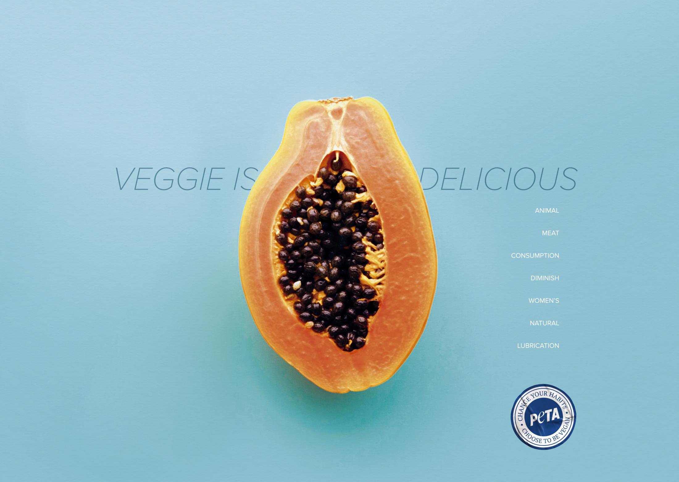 W kampanii zatytułowanej „Veggie is delicious” owoce oraz warzywa zostały zaprezentowane w sugestywny sposób, tak by przywodzić na myśl intymne części ciała. Natomiast na każdym zdjęciu z kampanii pojawił się niewielki, subtelny tekst, który wskazywał, w jaki sposób spożywanie mięsa może mieć negatywny wpływ na nasz organizm i nasze życie seksualne.