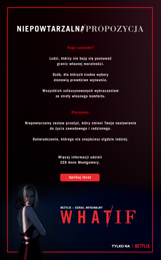 Oferta pracy jakich tysiące na serwisie Pracuj.pl? Nie tym razem. Poszukiwana jest osoba na stanowisko specjalistki ds. manipulacji. Brzmi intrygująco? Okazuje się, że to kolejna kampania Netflixa, streamingowego giganta, który promuje swój najnowszy serial z udziałem nagrodzonej Oscarem Renée Zellweger.