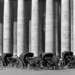 – „Itala ‘57” to zbiór zdjęć powstały podczas wycieczki Związku Polskich Artystów Fotografików, w ramach której dojechaliśmy aż do Neapolu. Po drodze zwiedziliśmy różne lokalizacje, w tym spędziliśmy 4 dni w Rzymie. Samo podróżowanie było uciążliwe, bo oprócz ruchu męczyły nas również bagaże, jednak to wszystko wywoływało na mnie duże wrażenie i „ciśnienie” – czułem w głowie duży nacisk sugerujący, że muszę zdać relację z tego co widzę, możliwie najlepiej jak potrafię, aby później pokazać to w kraju. Z perspektywy czasu widzę, że świadomość odcięcia nas od możliwości podróżowania w tamtych czasach, mocno mnie mobilizowała. Myślę, że skupienie i koncentracja, jakie temu towarzyszyły, zaowocowały dość sensownymi zdjęciami. Koncentrowałem się na kompozycji, sytuacjach które widziałem i działaniu trochę jak w transie. To trwało dwa miesiące, a jesienne Włochy były puste, bez turystów, przez to efekt jest prawdziwszy – to Włochy takie, jakimi naprawdę były. Oni żyli swoim życiem, a ja to mogłem zauważyć i sfotografować – komentuje fotograf Wojciech Plewiński.