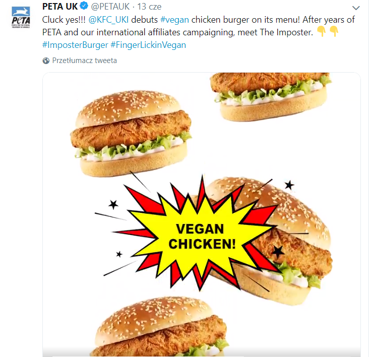 Na początku maja br. KFC poszerzyło swoją ofertę o potrawy wegetariańskie. W polskich lokalach marki znajdziemy teraz więc m.in. burgery oraz twistery z serem Halloumi. Oddział firmy w UK poszedł natomiast o krok dalej, bo w brytyjskich restauracjach brandu dostępne jest już wegańskie danie.