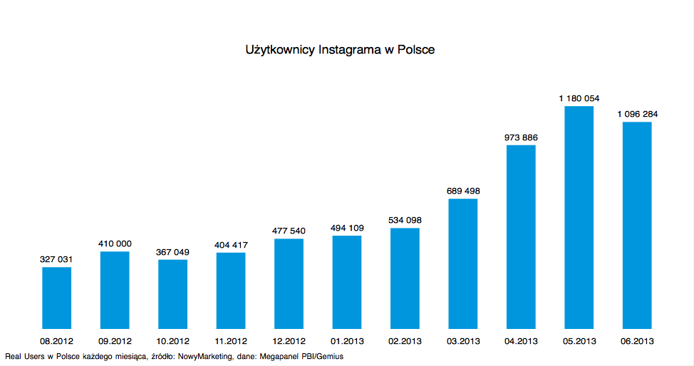 W czerwcu br. Instagram odwiedziło prawie 1,1 mln RU. Rosnąca popularność aplikacji sprawia, że pojawia się tam coraz więcej marek. Na Instagramie są już aktywne m.in. Allegro, BMW Polska, Cropp, Mohito, Mosquito.pl, Nałęczowianka (profil skierowany na rynki arabskie), Panorama Firm, Polkomtel Plus, PGE Polska Grupa Energetyczna, Reserved, Sinsay, Solar, Volkswagen Polska i Zamek Królewski w Warszawie (przegląd z lipca, przegląd z sierpnia br.).