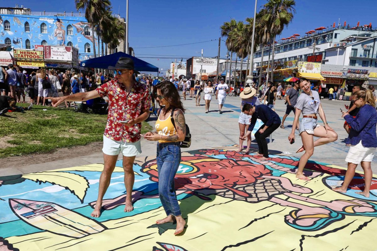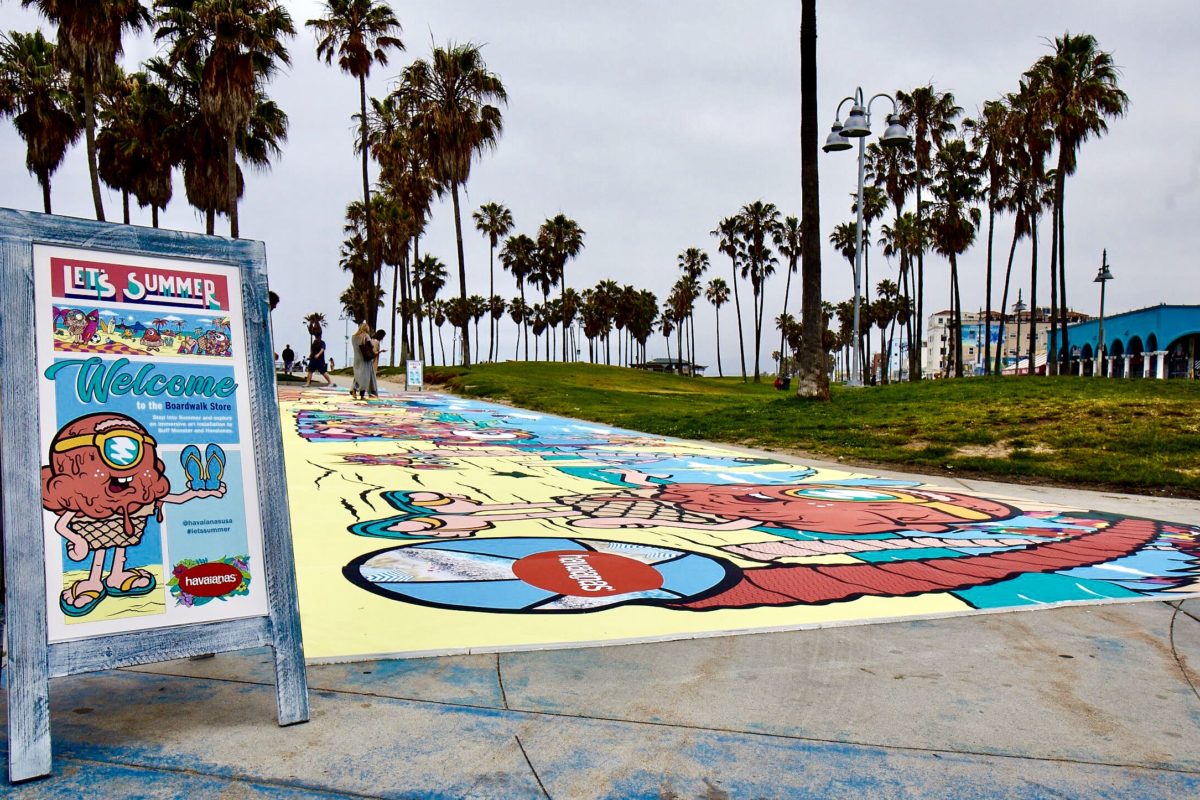 Kolorowe malowidło, które pojawiło się na promenadzie w Los Angeles, było częścią akcji „Step Into Summer” brazylijskiej marki Havaianas, zaś za jego wykonanie odpowiedzialny był artysta Buff Monster. Niezwykła instalacja pomagała za pomocą sztucznej inteligencji dobrać obuwie.