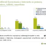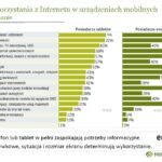 Jeśli chodzi o cele korzystania z Internetu w urządzeniach mobilnych, telefonu używamy m.in. do czytania wiadomości (81%), obsługi poczty (78%), pozyskiwania informacji i korzystania z portali społecznościowych (61%). Tablet z kolei dominuje podczas oglądania filmów i seriali (65%), grania w gry (57%), internetowych zakupów i dokonywania wszelkiego typu rezerwacji.