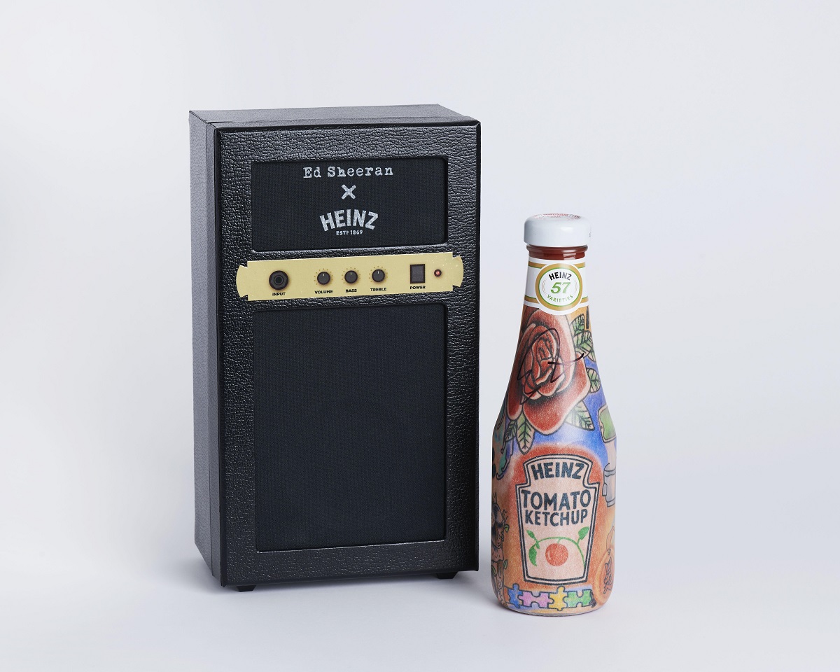 Z okazji 150. urodzin marki Heinz, Sheeran użyczył jej wzoru swoich tatuaży, owocem czego jest butelka „Ed Sheeran X Heinz Tomato Ketchup, Tattoo Edition”, na której honorowe miejsce zajmuje słynny tatuaż Eda z etykietką ketchupu Heinz. Na całym świecie dostępnych jest tylko 150 takich butelek, a każda z nich została podpisana przez Eda Sheerana. Butelka jest sprzedawana w kolekcjonerskim opakowaniu w kształcie głośnika.