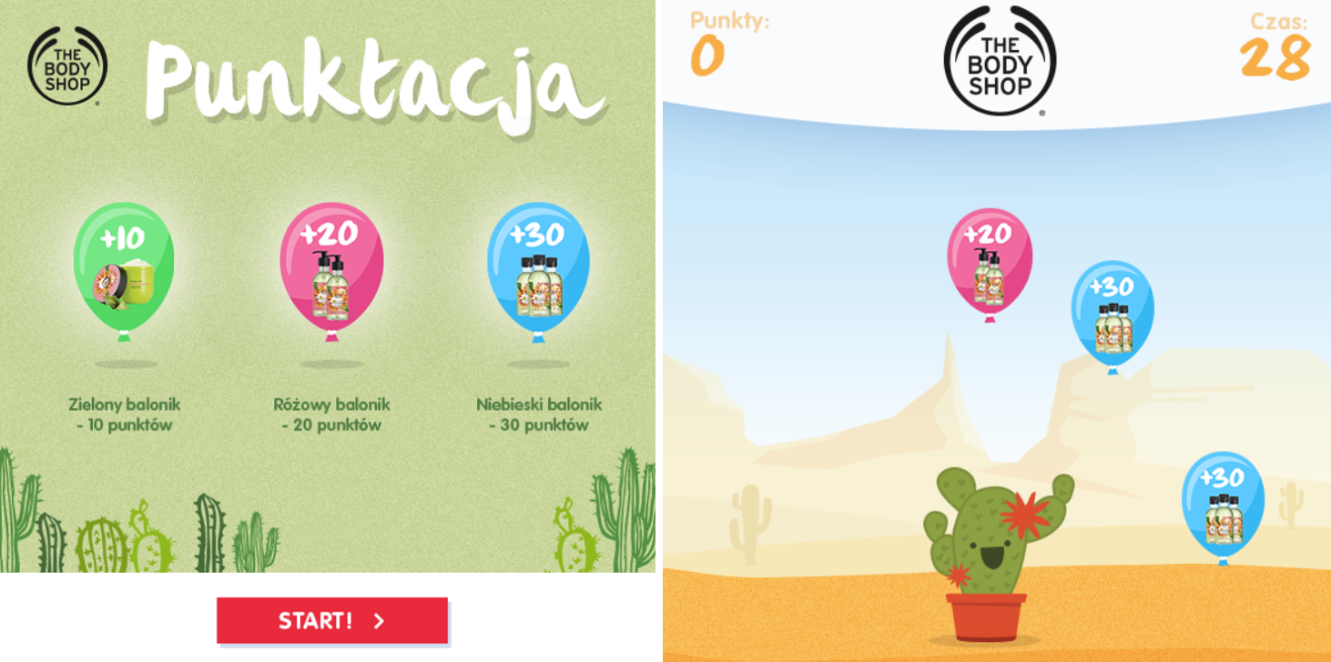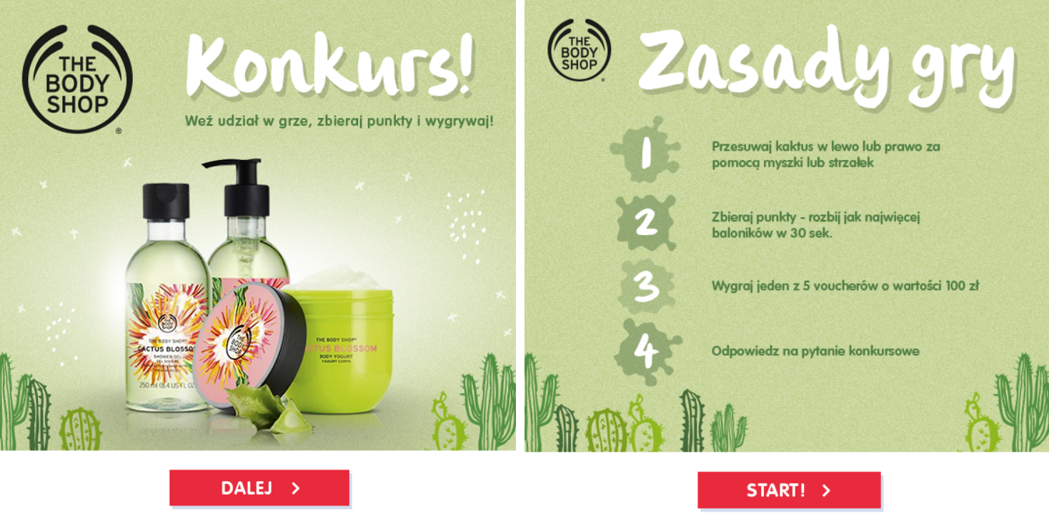 Ilustracje 7: Przykład gry promującej nową linię kosmetyków w aplikacji dla marki The Body Shop