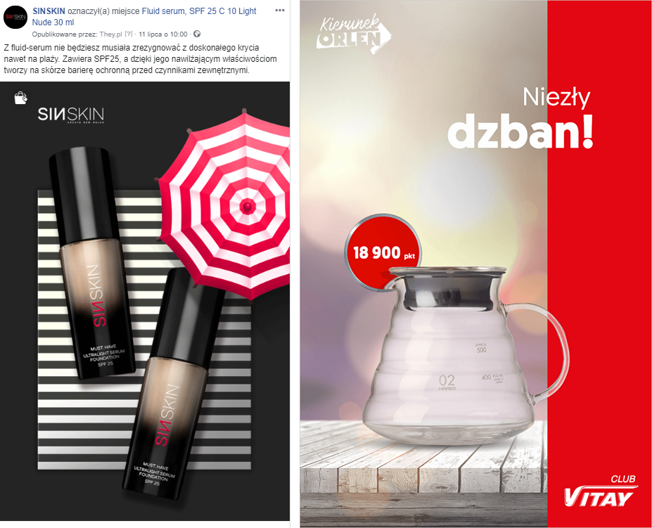- oznaczanie produktów ze sklepu na FB,