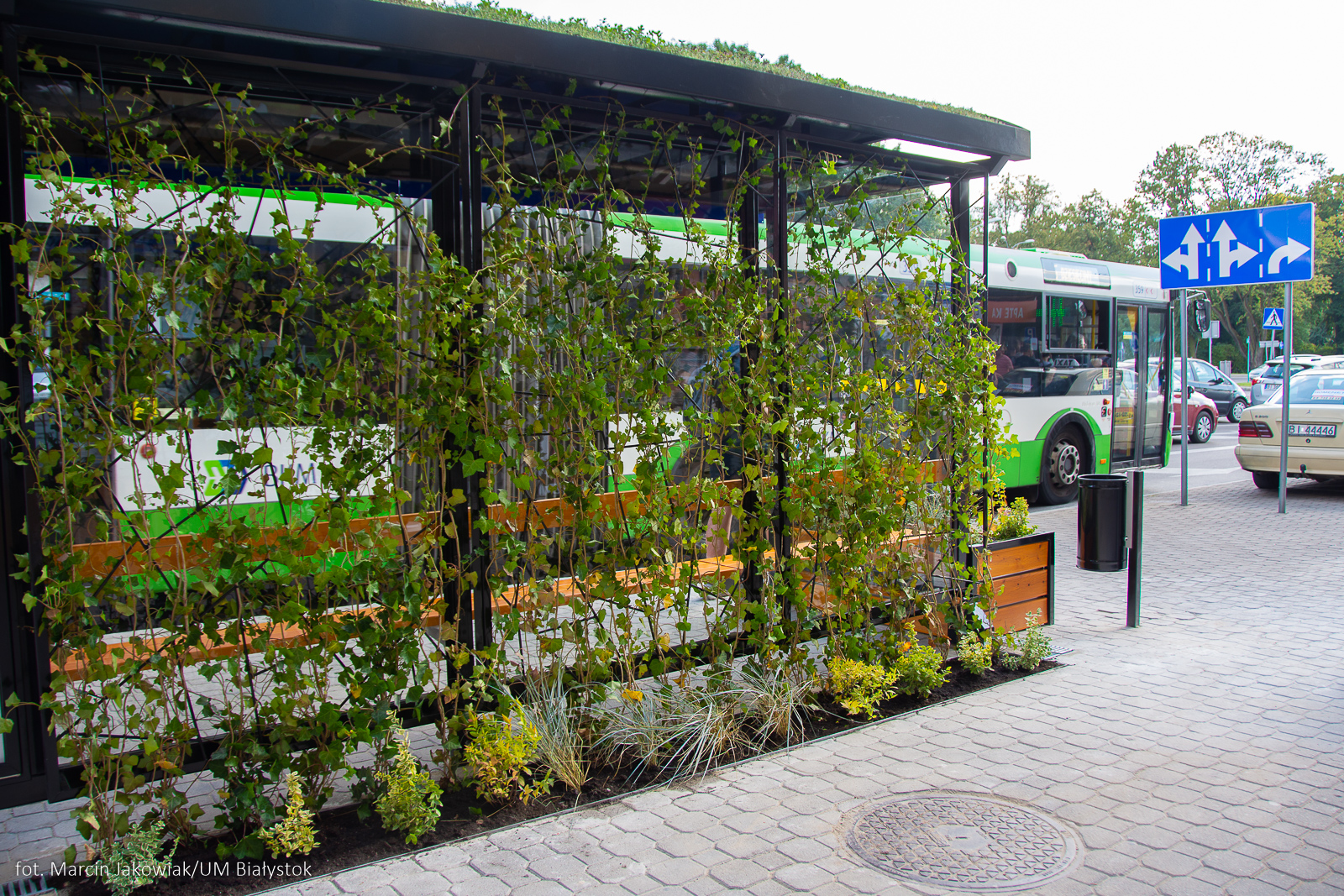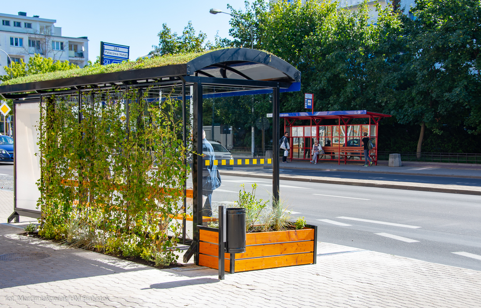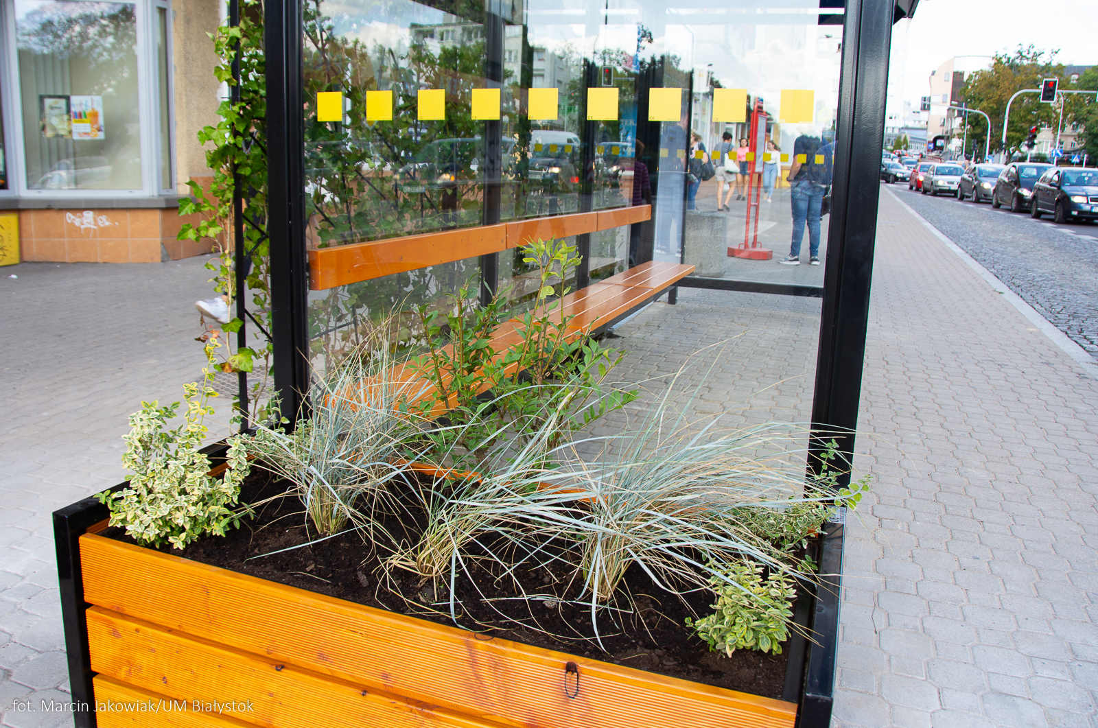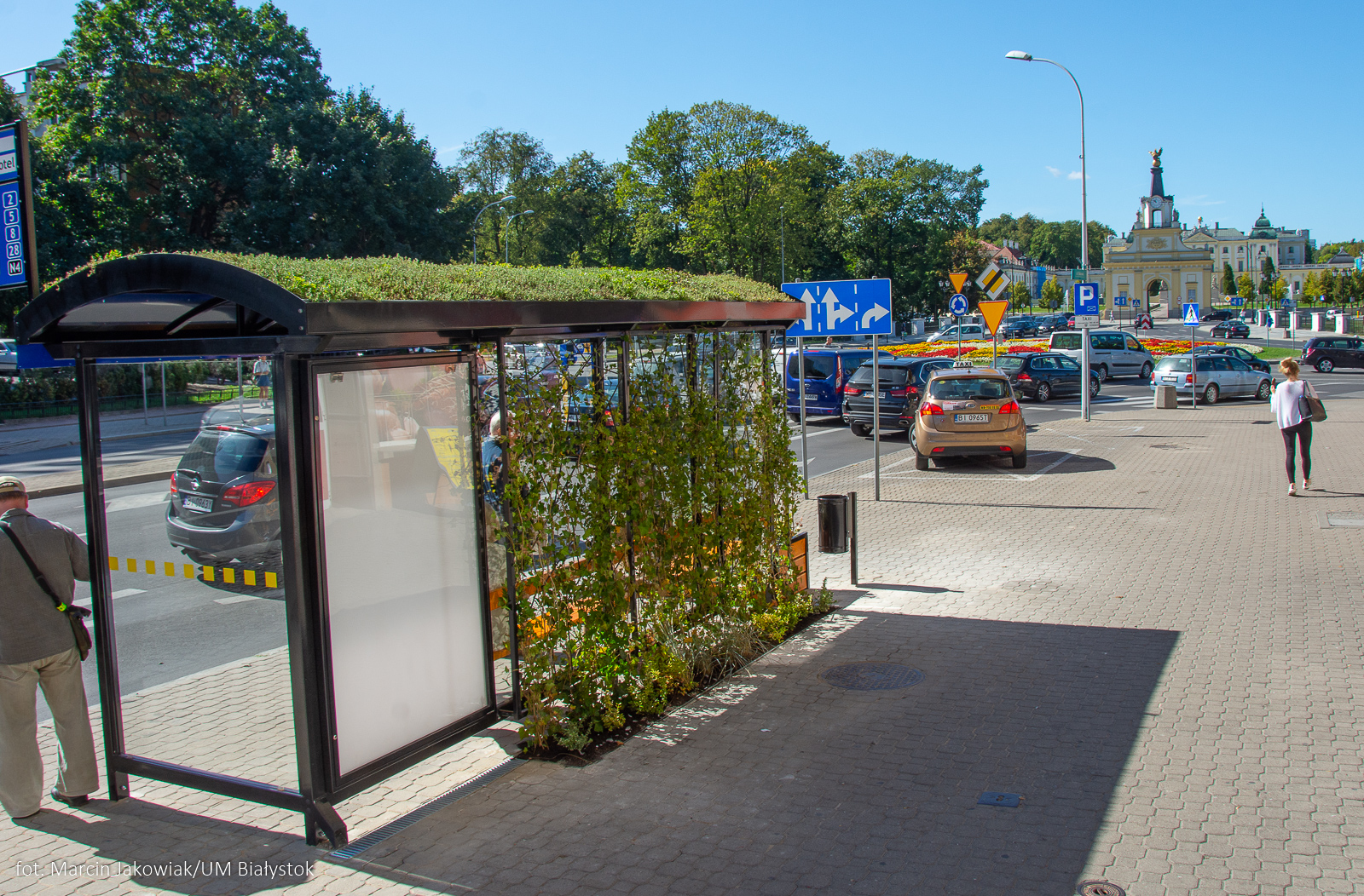 O planach stworzenia zielonych przystanków informowaliśmy na początku czerwca br., teraz zaś w końcu możemy zobaczyć efekty. Trzy białostockie wiaty – jeden przy ul. Pałacowej oraz dwa na Placu Niezależnego Zrzeszenia Studentów – zostały poddane roślinnej metamorfozie.