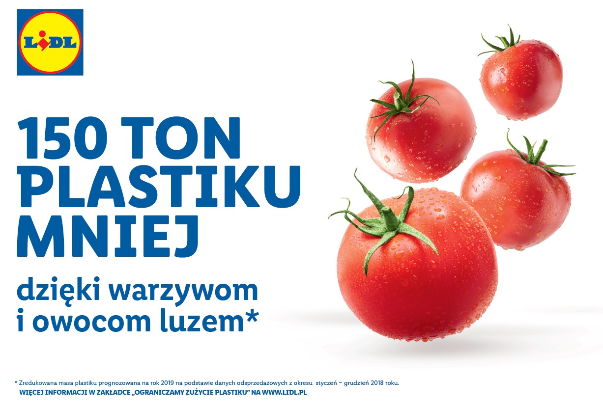 - 150 ton plastiku mniej dzięki warzywom i owocom sprzedawanych luzem, bez plastikowej folii – w ramach oferty „Ryneczku Lidla” produkty do niedawna sprzedawane wyłącznie w opakowaniach, takie jak cytryny, pomarańcze, grapefruity, mandarynki, włoszczyzna, pory, buraki, cebule, czosnek, kurkuma, aktualnie, są dostępne bez nich.