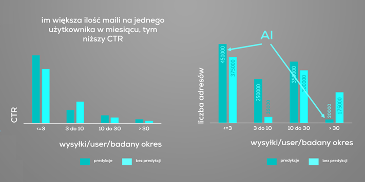 R.G.: E-mail marketing faktycznie jest dosyć prostym kanałem komunikacji i z samym nadawaniem, czyli wysłaniem tego komunikatu nie ma problemu. Wyzwaniem staje się konieczność sprostania oczekiwaniom odbiorcy o indywidualnie dostosowanych treściach e-mailingów. Z jednej strony mamy zróżnicowane grono odbiorców z różnymi zainteresowaniami, intencjami zakupowymi i oczekiwaniami co do sposobu, terminu i jakości otrzymanego komunikatu. A z drugiej strony to tysiące produktów i usług, spośród których należy wybrać te, które w tym konkretnym terminie i okolicznościach mają możliwość na największy popyt wśród odbiorców. Rozwiązania oparte na AI pozwalają na przetworzenie ogromnej liczby informacji i dostosowanie zarówno grupy docelowej, jak i samej treści, tak aby efekt wysyłki był jak najlepszy z punktu widzenia oczekiwań odbiorcy, ale też konwersji sprzedażowej.