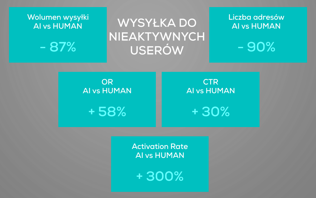 Kampanie planowane z wykorzystaniem AI notują regularnie wyższe wskaźniki otwarć oraz kliknięć.