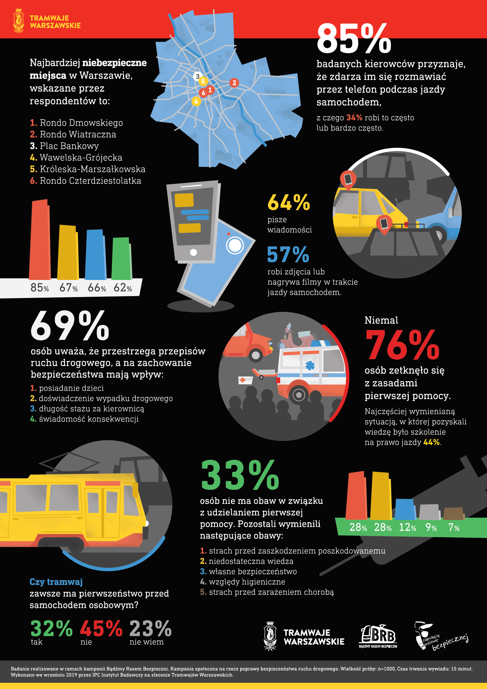 To tylko niektóre wyniki przeprowadzonego przez Spółkę przeprowadzonego przez Instytut Badawczy IPC badania, dowodzącego jak ważna jest systematyczna i konsekwentna edukacja wszystkich uczestników ruchu drogowego w zakresie bezpieczeństwa. W tegorocznej edycji Tramwaje Warszawskie chcą zwrócić uwagę dorosłych mieszkańców Warszawy na kwestie bezpiecznego przemieszczania się samochodem po Warszawie, zwłaszcza w kontekście przestrzegania przepisów i uważania na ruch tramwajowy, nieużywania smartfonów w trakcie prowadzenia pojazdów oraz dawania dobrego przykładu dzieciom.