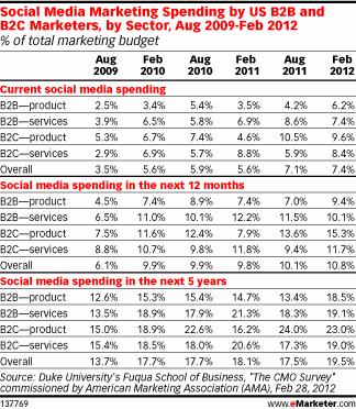 Wydatki na social media z podziałem na sektory od 2009 do 2012 roku