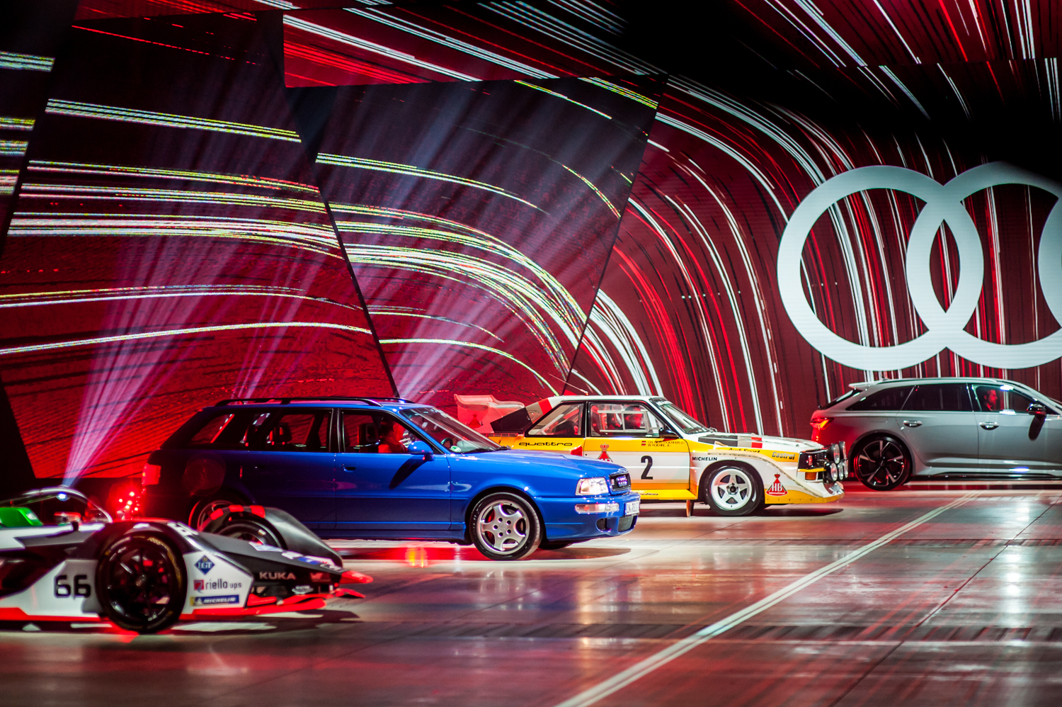 Doskonałą organizację odczuliśmy od samego początku – nie tylko pod względem logistycznym, ale także emocjonalnym. Agencja Zero,2 umiejętnie budowała napięcie i zainteresowała programem imprezy już od samego wjazdu na teren Global Expo, do którego prowadziła specjalnie wybudowana brama. Na przystawkę zaprezentowano we foyer nowe Audi R8, a danie główne stanowiły sportowe modele Audi, które po kolei wjeżdżały na scenę: RS Q3, SQ7 i SQ8, RS 6 i RS 7, a także modele historyczne, takie jak Audi quattro S1, Audi RS 2, Audi R8 LMS GT3. Przy okazji mogliśmy zobaczyć triumfujący w Formule E bolid FE06 e-tron, będący zapowiedzią nowego rozdziału elektromobilności w koncernie Audi.