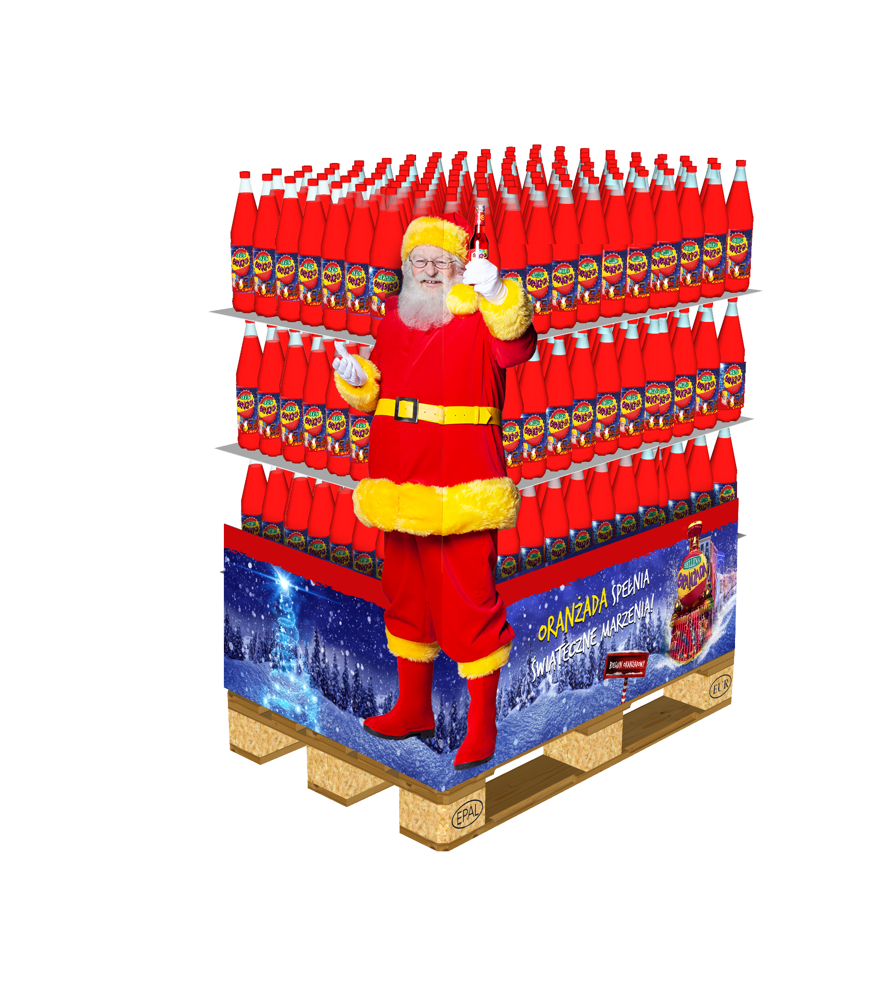 Uwagę konsumentów w punktach sprzedaży przykuwa wyjątkowa multiekspozycja z ruchomym pociągiem na szczycie. Motyw pojazdu wykorzystano także w spójnych wizerunkowo z reklamą standach przygotowanych w dwóch odsłonach – wersji standard i wersji premium. Pierwsze dedykowane są mniejszym placówkom, drugie – dużym halom handlowych. Dodatkowo w sklepach wiszą świąteczne plakaty i wobblery z mocnym brandingiem. W mniejszych punktach dystrybucji uwagę zwracają „potykacze” z postacią oranżadowego Mikołaja.