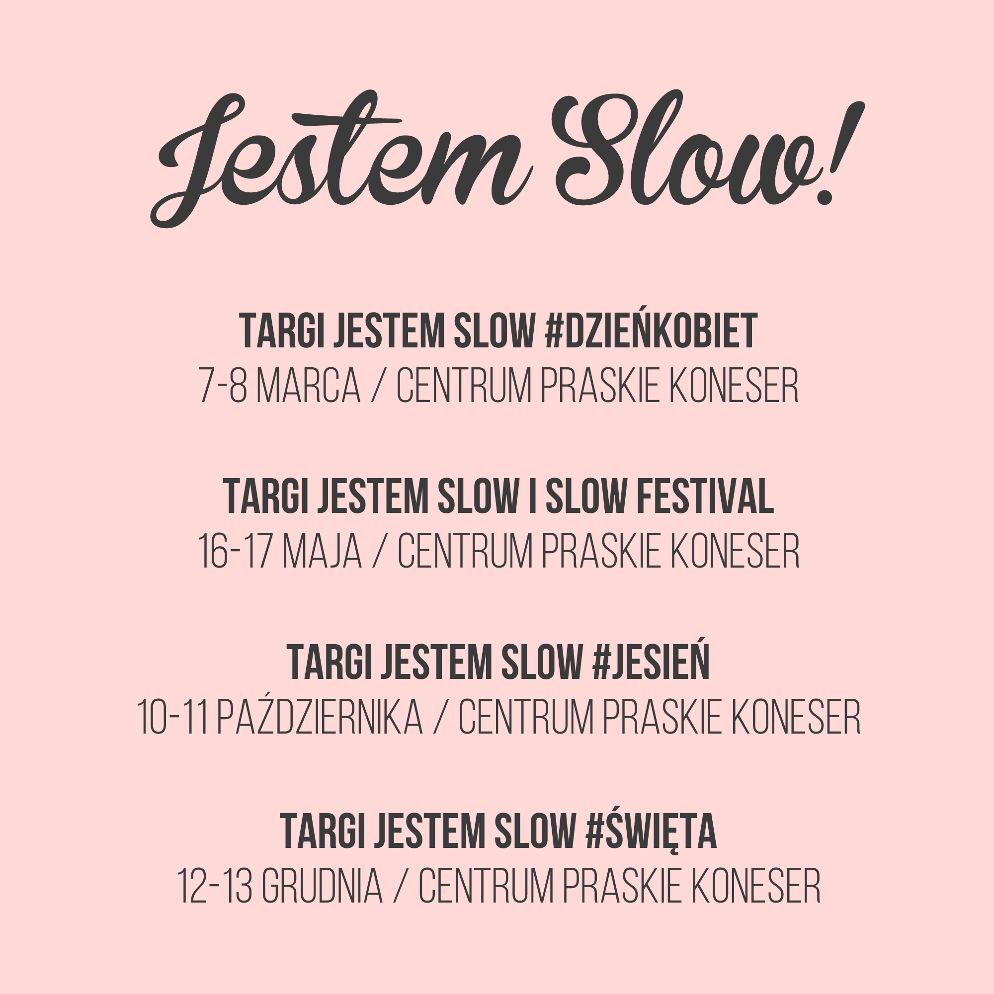 Grupa Slow funkcjonuje od 6 lat z sukcesami realizując projekty promujące trend „Slow” w Polsce. Dotychczas odbyło się 14 edycji modowych targów o nazwie Slow Fashion, 12 lifestylowo-modowych edycji Slow Weekendu, oraz 6 edycji nadwiślańskiego targu kulinarnego Slow Market. Wraz z początkiem 2020 roku, Grupa ogłosiła, że wszystkie organizowane przez nią targi nosić będą nazwę Jestem Slow.