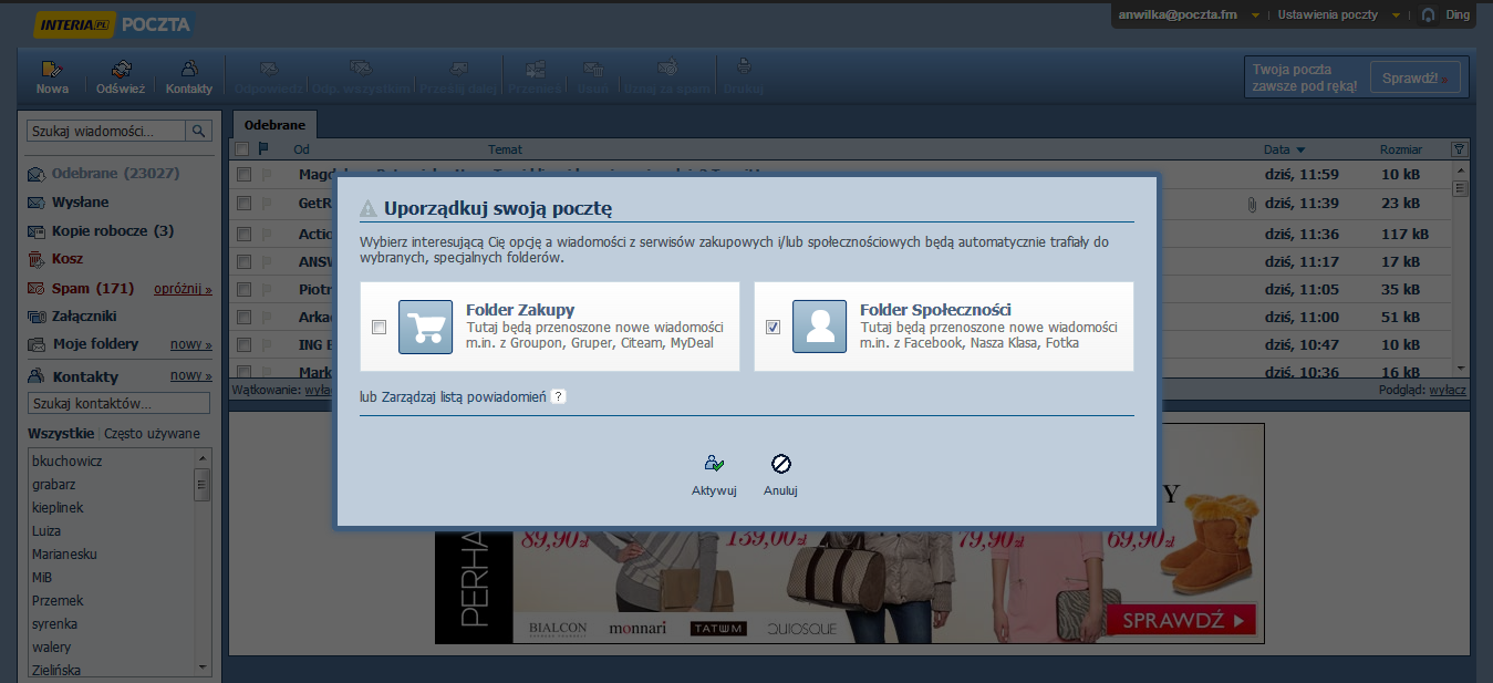 - “Oferty”, wchłaniające wszelkiej maści newslettery i mailingi.