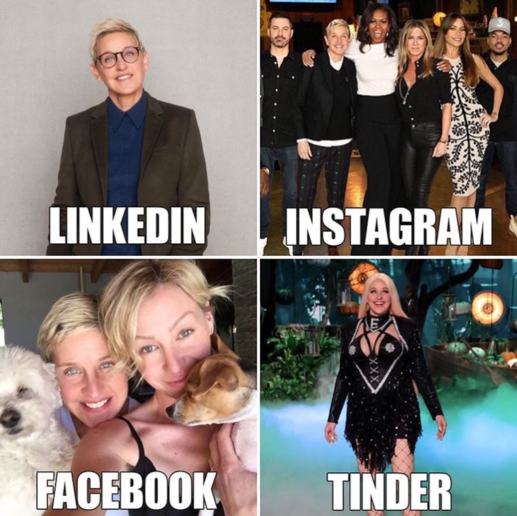 Możemy więc przyjąć, że ta viralowa akcja odzwierciedla naszą działalność w poszczególnych serwisach społecznościowych, gdzie forma przekazu dostosowana jest do odbiorcy, czy też kontekstu. LinkedIn służy do nawiązywania relacji biznesowych, Facebook to rodzina i znajomi, Instagram pozwala nam trochę „idealizować” nasze zwykłe życie, zaś Tinder po prostu służy do randkowania.