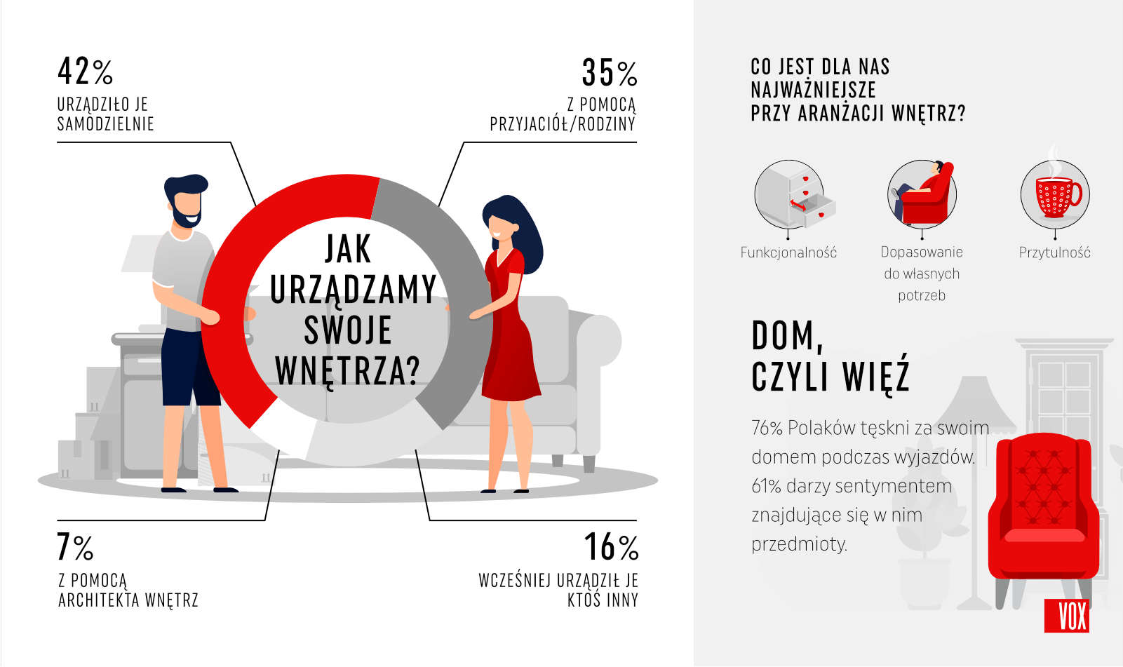 W raporcie stworzonym we współpracy z agencją Elephate, VOX prezentuje wyniki badania, w którym wzięło udział 1000 osób z całego kraju. Respondenci odpowiedzieli na pytania dotyczące urządzania wnętrz i emocji, jakie towarzyszą temu procesowi.