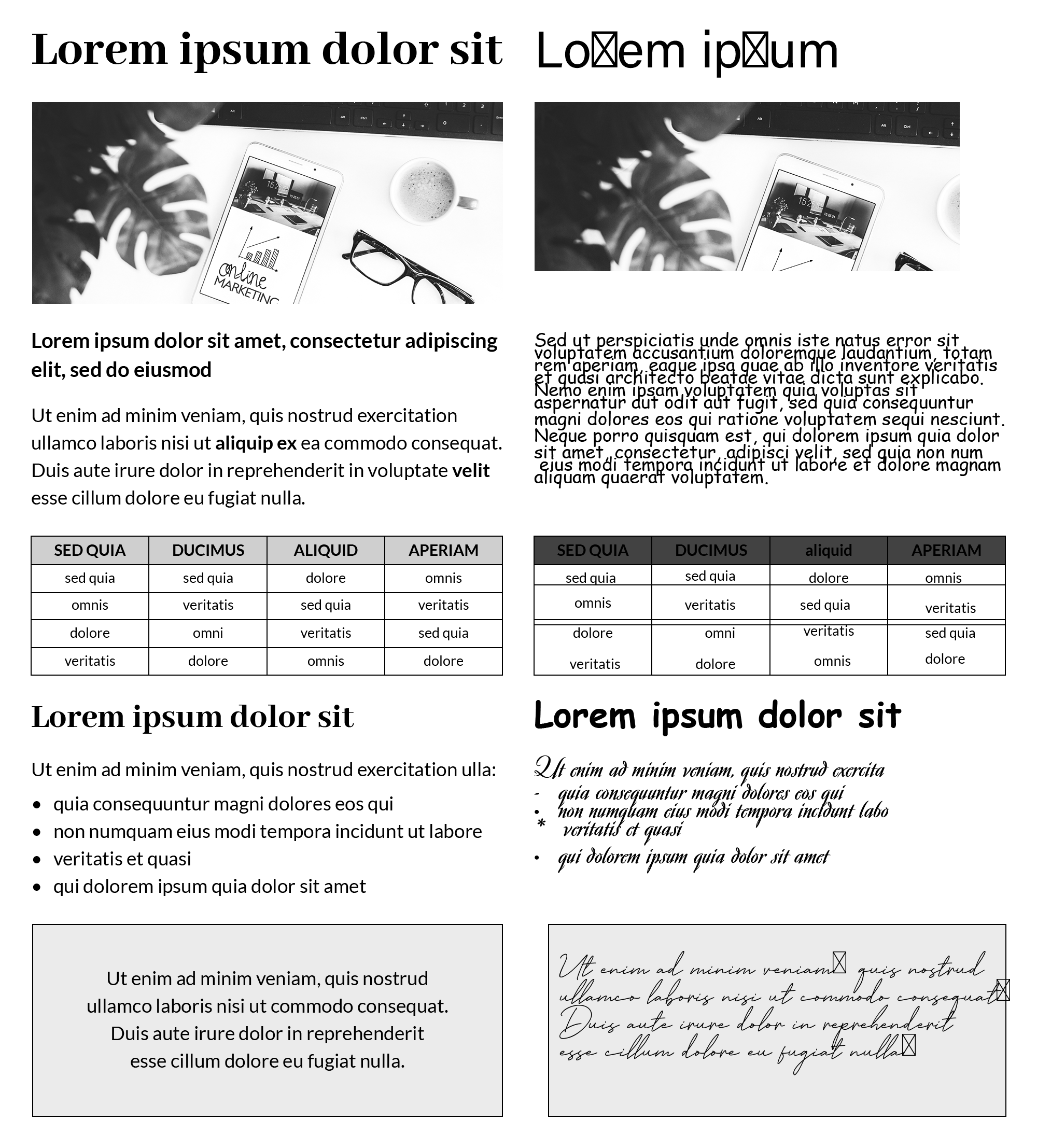 - jak teksty są sformatowane (wielkość fontu, interlinii, przejrzystość tekstu),