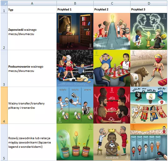 Rys. 6. Fragment Excela, w którym szufladkuję pomysły wykorzystywane na 11vs11.art