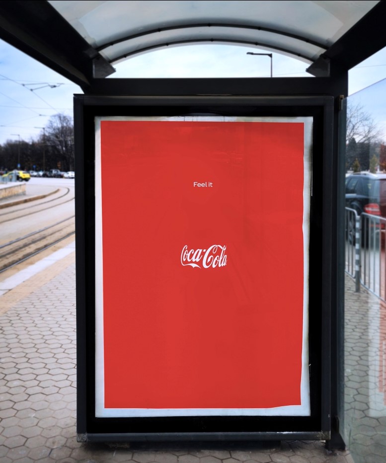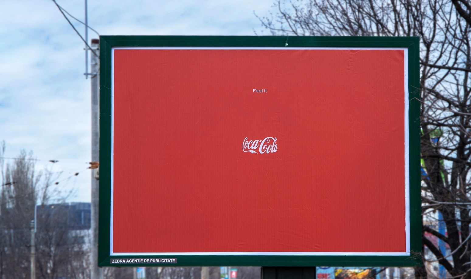 Niedawno w przestrzeni miejskiej Włoch pojawiły się reklamy, na których znajduje się jedynie logo Coca-Coli na czerwonym tle. Mimo wszystko, układ liter sugeruje, że słynny znak brandu umieszczony jest na kultowej już butelce firmy – nawet jeśli samej butelki nie ma na billboardzie.