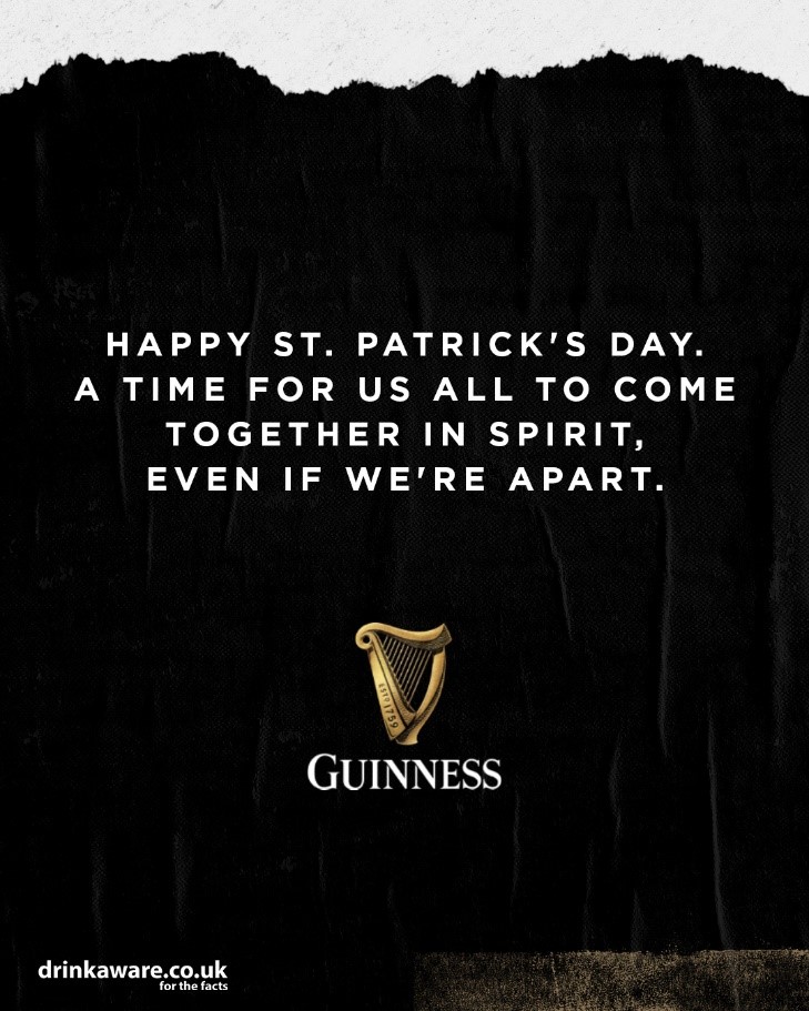 Guinness nawiązał do Dnia Świętego Patryka i podkreślił jak ważne jest, by w tym roku spędzić go wyjątkowo inaczej.