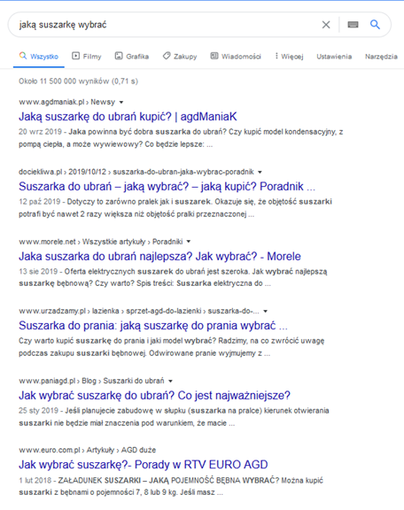 - Czy wiemy, jaki content Google preferuje pod wybranymi frazami?