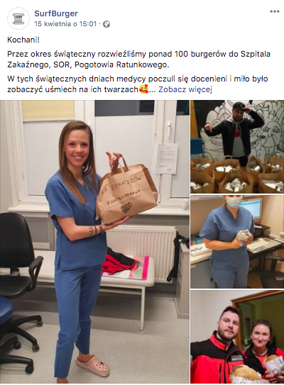 Niestety wiele z nich już zostało zamkniętych bezpowrotnie. Nie każdy lokal był w stanie utrzymać się jedynie z dań wydawanych na wynos. Jednak społeczeństwo ruszyło na ratunek swoim ulubionym restauracjom organizując zbiórki, akcje promocyjne. Restauracje mimo swojej trudnej sytuacji same też zaczęły pomagać… medykom. W popularyzacji działań pomocowych pomagają bardzo media społecznościowe.