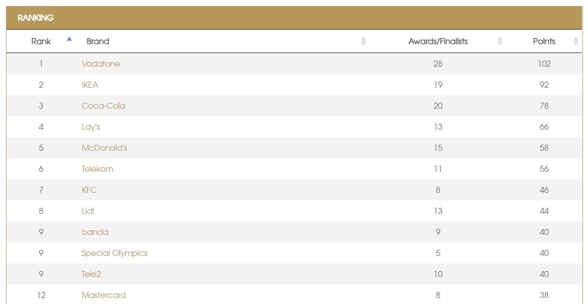 Już od dziesięciu lat Effie przygotowuje swój coroczny ranking, w którym prezentuje zestawienie najefektywniejszych agencji, marek oraz marketerów, zarówno na świecie, jak i w Europie. Tworzony jest on na podstawie analizy kampanii nominowanych oraz nagradzanych w konkursie Effie Awards na całym świecie.