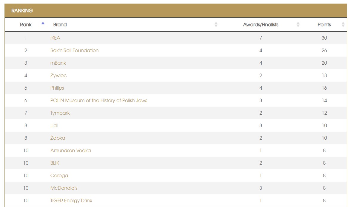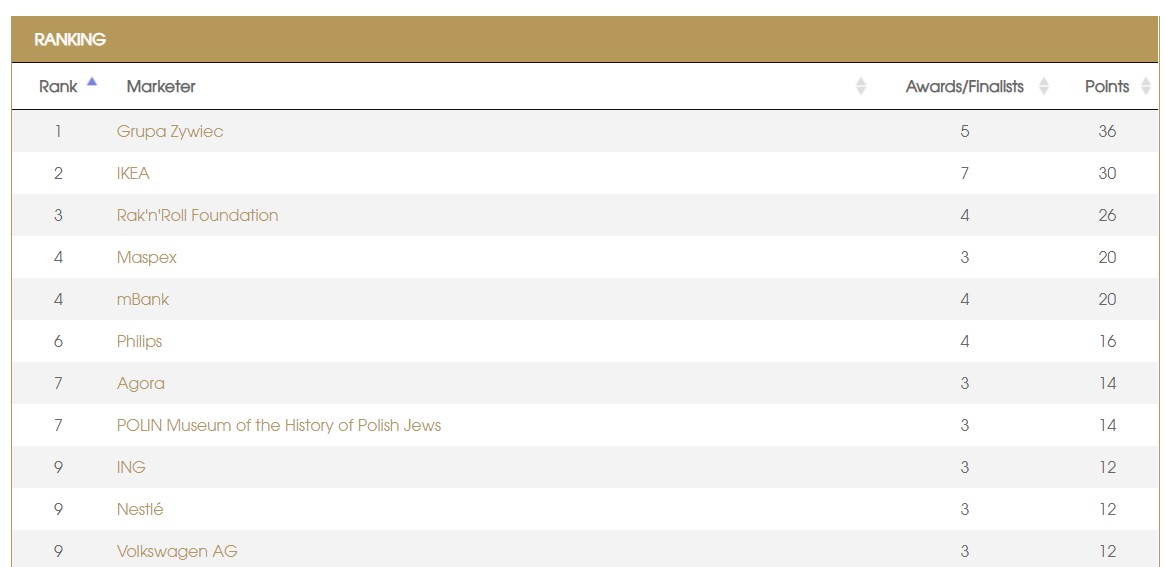 W Polsce najefektywniejszym marketerem okazała się być Grupa Żywiec. Na podium znalazła się też IKEA oraz Fundacja Rak’n’Roll.