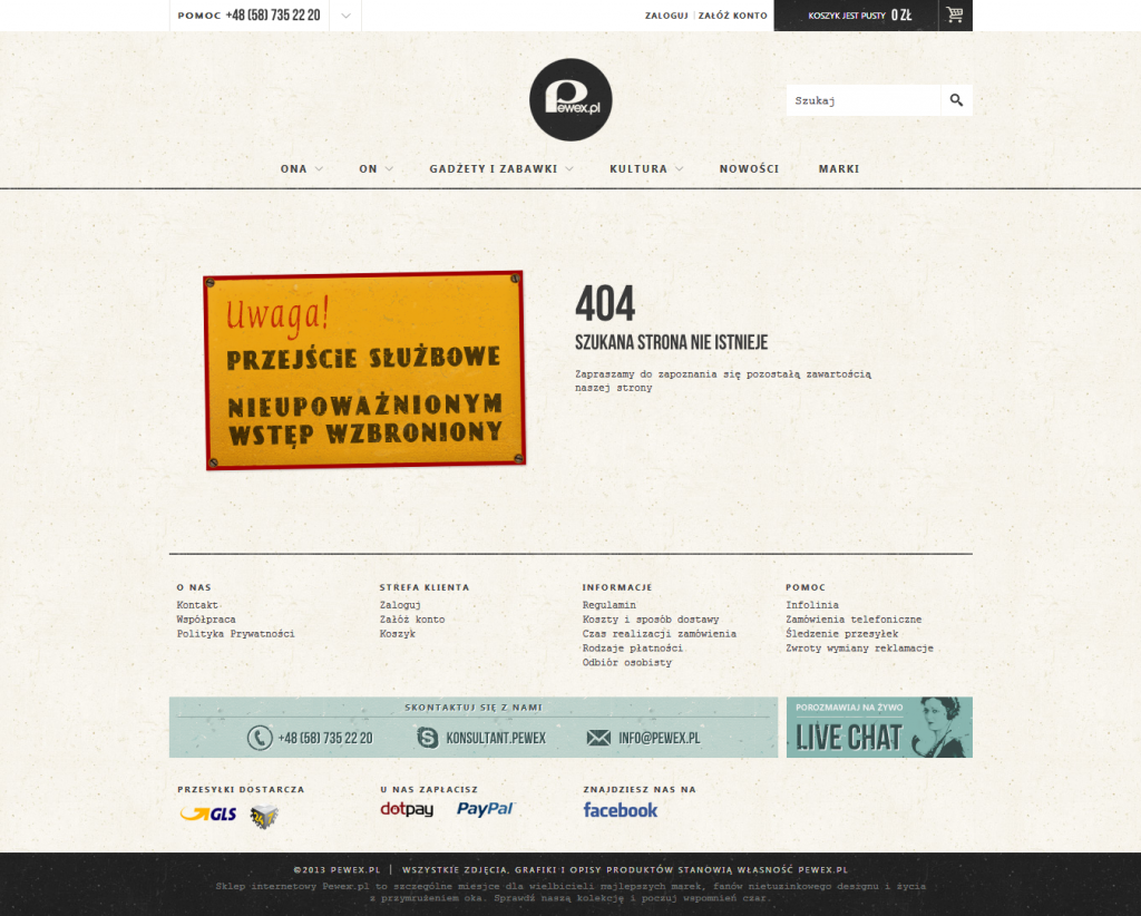 Strona błędu 404 sklepu (więcej przykładów):