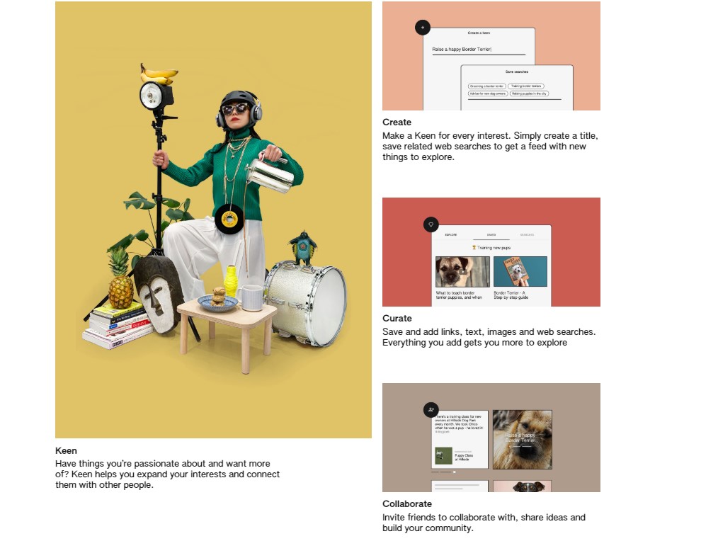 Teraz amerykańska firma wprowadziła na rynek nowy serwis społecznościowy o nazwie Keen, który ma być konkurencją dla Pinteresta. Platforma jest bowiem oparta na kolekcjach zainteresowań, które składają się z inspirujących zdjęć, filmików czy nawet linków do ciekawych artykułów. Użytkownicy – podobnie jak na Pintereście – mają możliwość upublicznienia swoich kolekcji lub ukrycia ich.