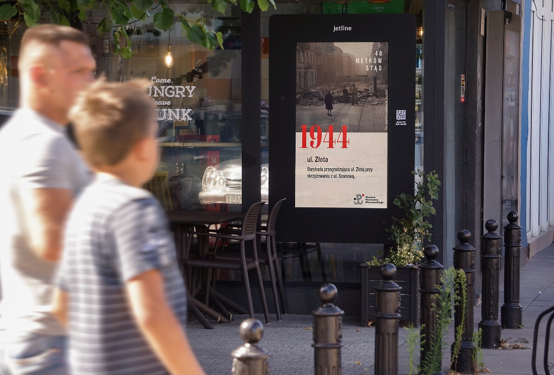 – Idea, która nam przyświecała podczas przygotowywania akcji jest prosta: ślady Powstania są do dziś obecne w mieście, wystarczy się rozejrzeć. Dlatego w spotach podajemy odległość, która dzieli ekran od miejsca, o którym opowiada fotografia. Czasem jest to 40, czasem 150 albo 550 metrów, czasem zaś piszemy „w tym miejscu” – i dokładnie tu, gdzie stoi widz, działo się to, co widzi na zdjęciu – mówią przedstawiciele Jet Line.