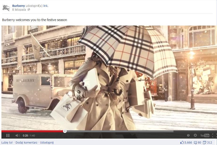 Dobrym przykładem do naśladowania jest Burberry, który dostarcza fanom materiały fotograficzne i video w charakterystycznym sobie klimacie i beżowo-czerwonej kolorystyce popularnej kratki. Na profilu znaleźć można sneak peeki z najnowszych kampanii, propozycje prezentów oraz treści wizerunkowe. Efekty? 16 mln fanów, tysiące polubień, setki komentarzy i udostępnień.