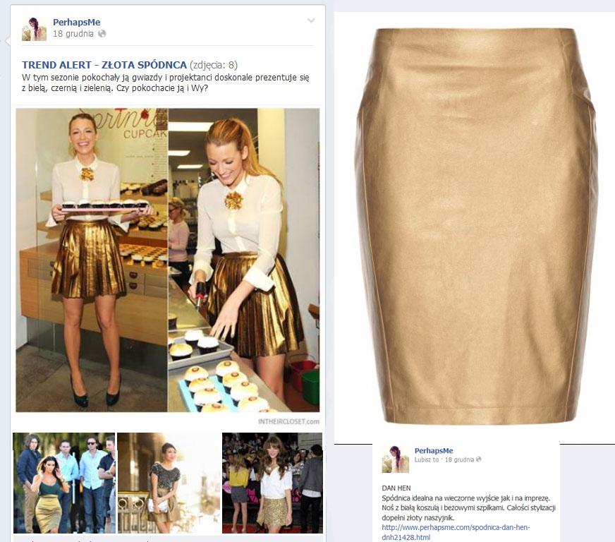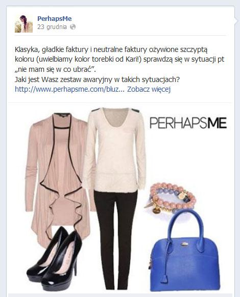 Na profilu marki PerhapsMe w cyklu Trend Alert prezentowane są stylizacje celebrytów uwzględniające modny produkt, który znajduje się aktualnie w ofercie sklepu.
