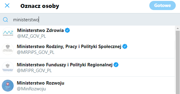 Chcąc, aby nasze komunikaty docierały do sprecyzowanych organizacji, instytucji, czy kluczowych osób warto skorzystać z tagowania. Aby zrobić to skutecznie i ominąć limit ograniczających nas 280 znaków potrzebujemy formy graficznej. Najlepiej, gdy przesłany obraz podbija treść naszego komunikatu poszerzając kontekst wypowiedzi. Następnie na załączonej grafice oznaczamy interesujące nas osoby, czy media. Wówczas każdy z otagowanych dostanie dedykowane powiadomienie, które przekieruje go do naszego tweeta. Jest to narzędzie szczególnie przydatne, podczas budowania naszej pozycji i zbierania jakościowych obserwujących.