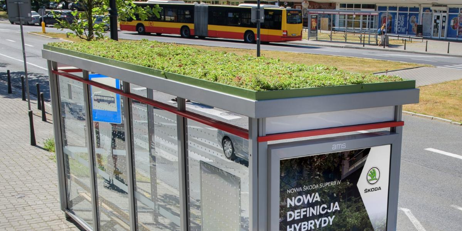 Dzięki zastosowaniu warstwowej technologii wykonania podłoża 9m2 dachu rozchodnikowego – czyli jedna wiata – pozwala na zmagazynowanie w czasie deszczu około 90 l wody, obniża zapylenie powietrza o ok. 15-20 proc. w otoczeniu wiaty, a w upalne dni obniża temperaturę otoczenia o 3-5 C. Takie rozwiązania stosowane na dużą skalę dają ogromny efekt. Gdybyśmy pokryli dachy wszystkich wiat w Warszawie otrzymalibyśmy zieloną powierzchnię równą boisku piłkarskiemu! Jednak takie rozwiązania są przede wszystkim samowystarczalne, więc ich zastosowanie nie wiąże się z dodatkowymi kosztami dla samorządów. Zieleń na przystankach to też oczywiście wymiar estetyczny. Działalność AMS to nie tylko reklama, ale również realny wpływ na kształtowanie krajobrazu miejskiego poprzez wprowadzanie rozwiązań użytecznych i przyjaznych, które współgrają z życiem współczesnego miasta. Co do inspirowania, to bez wątpienia medium jakim jest reklama OOH, ma do spełnienia ogromną rolę edukacyjną. I tą możliwość chcemy wykorzystywać jak najpełniej.