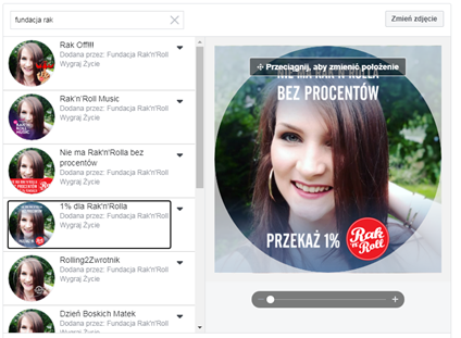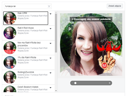 W tym przypadku mamy styczność z nakładkami, które poza wymienionymi we wcześniejszych przykładach korzyściami własnymi, takimi jak promocja, bądź pozyskanie ambasadorów marki, stanowią również bardzo istotną kampanię, która ma na celu zmienić postrzeganie społeczne choroby nowotworowej. Poprzez nakładkę „Rak Off!!!”, Fundacja chce dać wsparcie wszystkim osobom zmagającym się z chorobą. Możliwość ustawienia nakładki na zdjęcie profilowe przez każdego użytkownika Facebooka umożliwia zjednoczenie się ogromnej grupy ludzi.