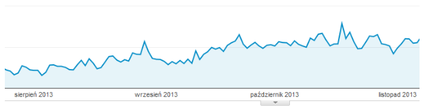 Od tego momentu obserwujemy stale rosnący ruch „Not Provided” spędzający sen z powiek specjalistom z branży SEO, który potrafi znacząco wzrastać co widać poniżej: