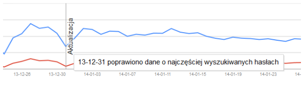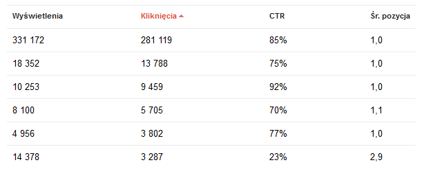 O ile jeszcze w 2013 roku statystyki te nie były zbyt dokładne, tak pierwsza w 2014 roku aktualizacja Google Webmaster Tools dostarcza nam dokładnych danych. Otrzymujemy szczegółową listę wszystkich fraz kluczowych, po których użytkownicy trafiają na nasz serwis, liczbę wyświetleń, liczbę kliknięć a nawet średnie pozycje fraz w wynikach wyszukiwania w analizowanym okresie. Do statystyk można trafić poprzez zakładkę Ruch związany z wyszukiwaniem>Wyszukiwane hasła.