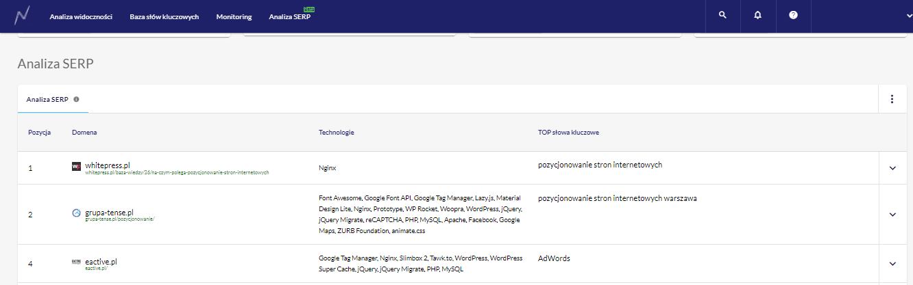 Nowością jest moduł analizujący sytuację w SERP (obecnie w wersji beta).
