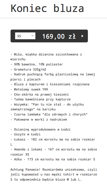 Miej na uwadze, że nie każdy będzie chciał kupić twój produkt i nie każdy będzie nim zainteresowany. Każdy sprzedawca kieruje swój produkt do określonej grupy docelowej, która charakteryzuje się konkretnymi cechami. W zależności od branży i produktu, grupa docelowa może być bardzo szeroka lub zawężona – sklep Sporti.pl sprzedaje sprzęt sportowy dla wielu różnych sportowców np. rowerzystów, tenisistów, biegaczy itd., z kolei sklep Febro swoją ofertę dedykuję jedynie osobom jeżdżącym konno. Stąd opisy produktów i komunikacja w tych dwóch sklepach będzie się diametralnie różnić.